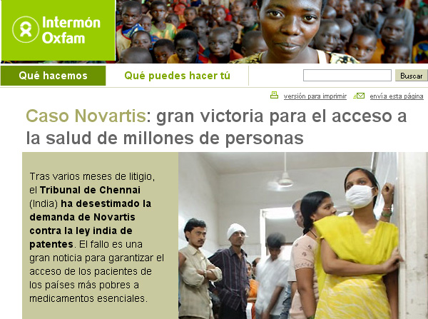 "India es el principal productor de genéricos del mundo y abastece de medicamentos baratos a muchos países. Con este caso, Novartis había puesto en peligro el acceso a los medicamentos de millones de personas, al mismo tiempo que estaba minando la aceptación pública del sistema internacional de patentes, del que dependen los beneficios de las industrias farmacéuticas. La sentencia es un gran alivio para millones de pacientes y personal sanitario de los países en desarrollo que dependen de los medicamentos genéricos."