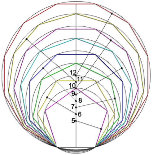 Si hallamos el ángulo que forman los dos lados del polígono, basta con trazar la mediatriz a cada uno de ellos, el punto donde estas se corten será el centro de la circunferencia que circunscribe al polígono, sólo queda trasladar el lado del polígono sobre la circunferencia.