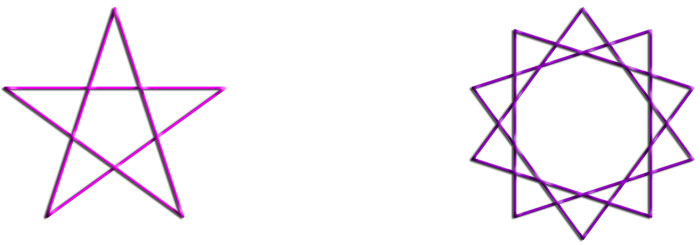 DE DIEZ PUNTAS: se obtiene a partir de un decágono regular. Se construye uniendo los vértices de 3 en 3 (tercera especie).