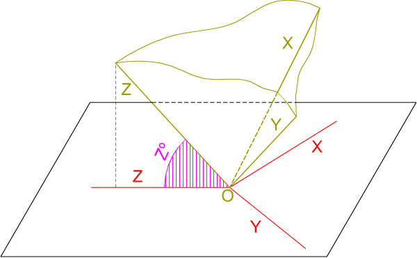 En la imagen inferior, en perspectiva isométrica, puedes ver cómo la traza de la cara XY del triedro, con el plano del cuadro, forma 90º con el eje Z. La cara XY abatida forma 45º con la traza XY; así mismo el eje Y forma 30º con dicha traza. Recuerda que las aristas del triedro (ejes de la isometría) se cortan ortogonalmente dos a dos.