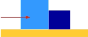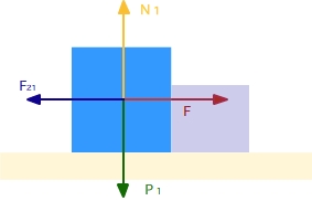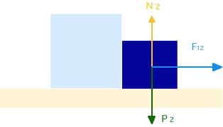 Dos cajas de 20 y 30 kg de masa respectivamente, se encuentran apoyadas sobre una superficie horizontal sin rozamiento, una apoyada en la otra. Si empujamos el conjunto con una fuerza de 100 N. ¿Cuál es la aceleración de cada masa?¿Qué fuerza ejercerá cada caja sobre la otra?