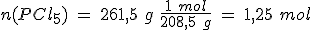 En un recipiente de 5 litros mantenido a 300ºC en el que previamente se ha hecho el vacío, se introducen 261.5 g de PCl5(g) y se cierra, estabilizándose la presión cuando alcanza un valor de 16.45 atmósferas al establecerse el equilibrio PCl5(g) ↔ PCl3(g) + Cl2(g).