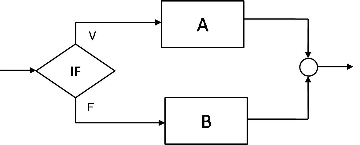La pregunta se representa con la figura de un rombo cuyas salidas son las entradas de los bloques A y B.