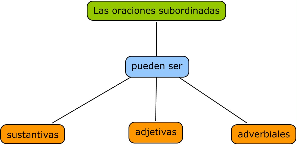 Observad ahora —continúa Sara su explicación— el siguiente esquema. En él os he resumido los distintos tipos de subordinación: