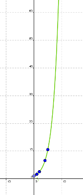 Como puedes ver únicamente están representados los primeros puntos, y es que para representar los siguientes tenemos que modificar escalas y zoom. Puedes pensar que esto se parece a lo de las parábolas, pero con los 7 puntos vas a ver que no es así, que se dispara hacia arriba mucho más rápido.