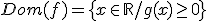 el dominio de la función es el conjunto de valores donde g(x) es mayor o igual que cero: