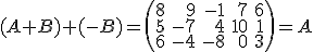 En nuestro caso, en el estudio de las matrices que nos ocupa, si a una matriz A le sumo una matriz B, obtengo una nueva matriz A+B ¿Qué matriz debemos sumarle para que me vuelva a resultar la matriz inicial A que tenía? en este caso es sencillo ya que (A+B)+(-B) = A