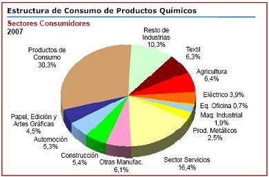 Puedes observar cómo Europa es el principal consumidor de productos químicos y cómo el sector más importante es el de productos de consumo.