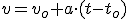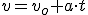 La aceleración y la velocidad inicial tomarán cada una un valor constante y normalmente el instante inicial será 0 segundos. Despejando de la anterior ecuación y llamando vo a la velocidad inicial tendremos que: