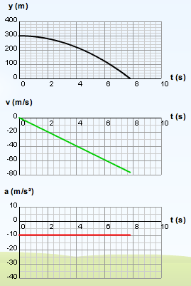 En este simulador puedes variar el punto desde el que se suelta una bola que describe una caída libre. Con la posición inicial en 200 m, suelta la bola y observa las gráficas posición-tiempo, velocidad-tiempo y aceleración tiempo.