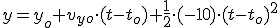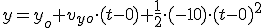Como puedes observar la posición (y) vale 200 metros cuando el tiempo es cero y empieza a decrecer a medida que pasa el tiempo. La forma de la curva es una parábola como ya sabemos. Pasado un tiempo, la gráfica corta al eje horizontal. En ese momento la altura "y" se hace cero.